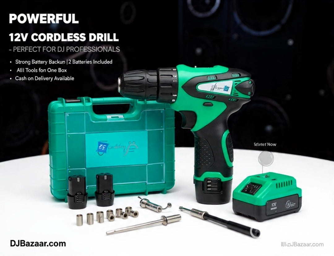 This Wireless Cordless Drill Machine Kit is a powerful and reliable tool specially recommended for DJ sound professionals, technicians, electricians, and workshop use.